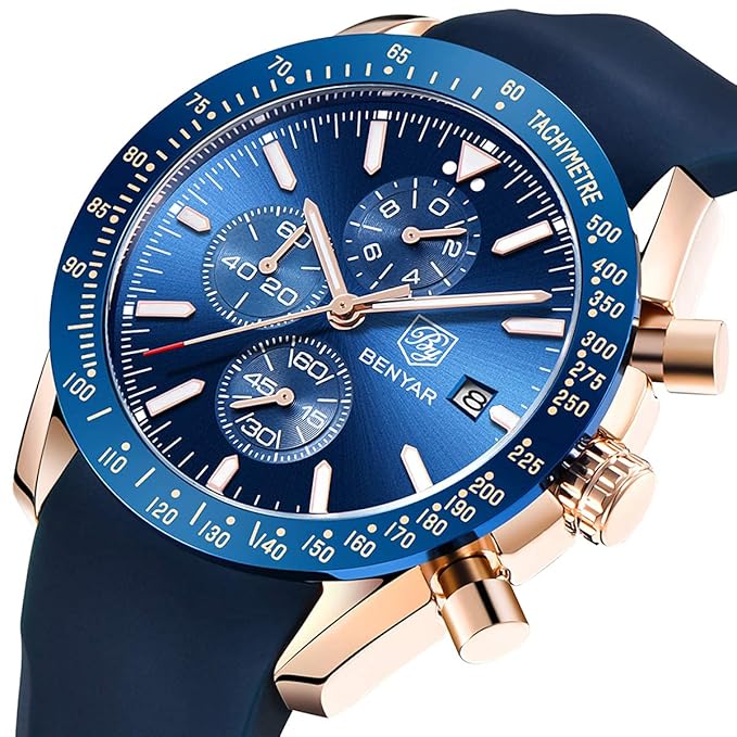 Discover the Benyar Watch, a perfect blend of luxury and performance. This stylish men’s chronograph watch with quartz movement, waterproof design, and blue silicone band redefines elegance for modern men. Find out why Benyar Watches are among the best watches for men for both business and casual wear.